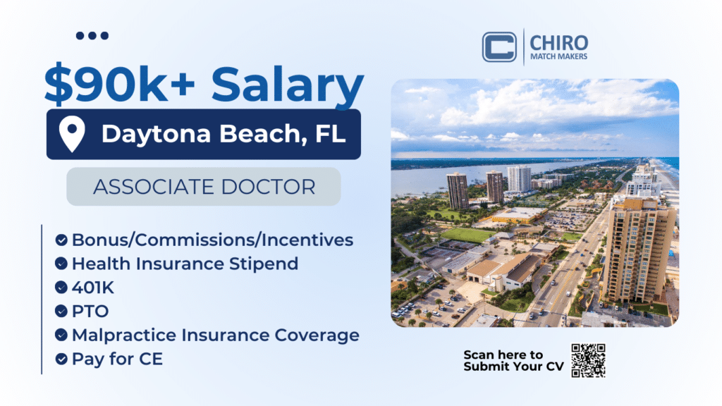 A dynamic, integrated chiropractic clinic in Daytona Beach, FL, is seeking an Associate Chiropractor to step into a leadership-driven role within a growing, multi-location organization. This full-time position offers a base salary of $90,000–$110,000, plus monthly bonuses.